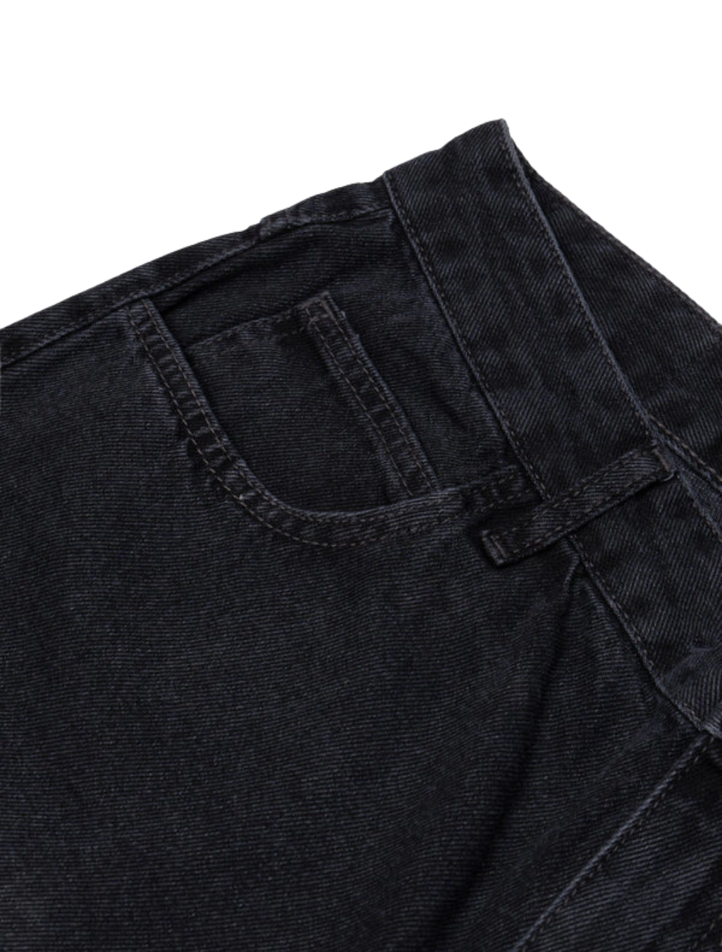 Bermuda jeans 100% algodão confeccionada em denim estonado, garantindo estrutura, resistência e aparência desgastada proposital (washed black) com toque contemporâneo.
