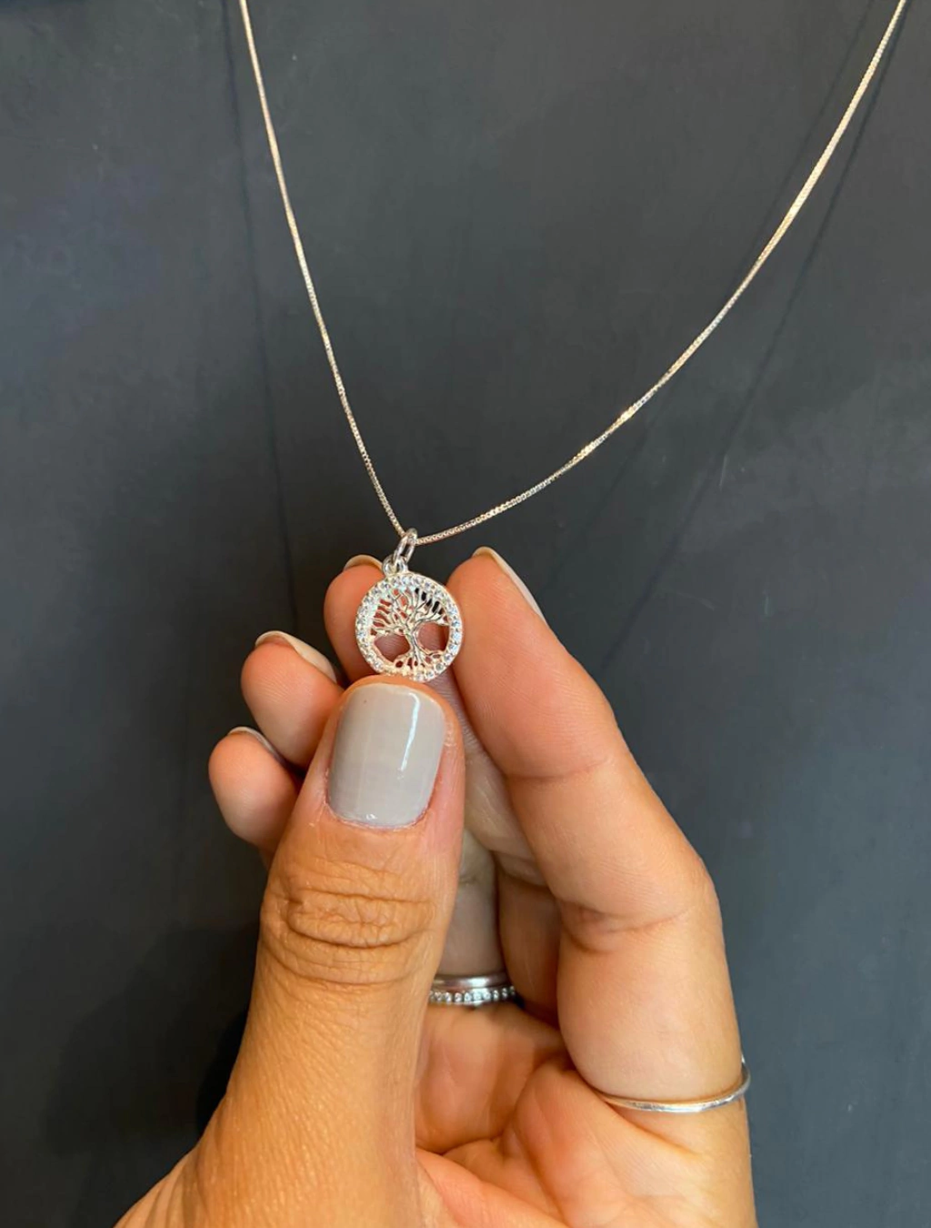 Corrente Prata 925 com Pingente Árvore da Vida Cravejada