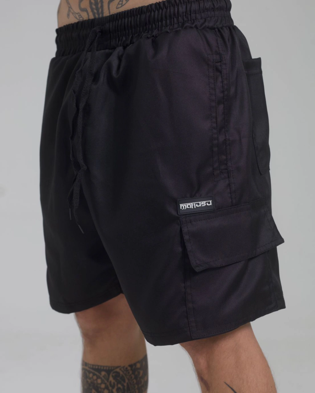 O Shorts Mafiusu Preto Borracha Preta é a peça perfeita para quem busca praticidade e estilo. Feito em tecido sarja de alta qualidade, possui bolsos frontais e laterais com fecho, proporcionando um visual despojado e funcional. O cós com elástico e cordão de ajuste garante um ajuste confortável e personalizado.